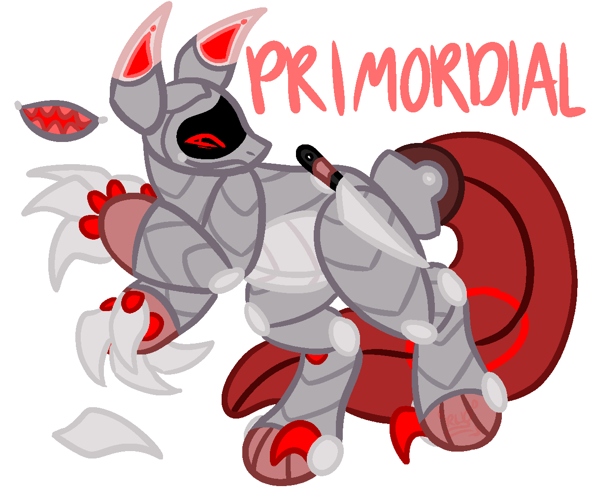 Description: Primordial Monibuds are built for strength and resilience, typically hunters, fighters, police, security, athletes, physical trainers, or guardians of people, places, and things. Their trinkets tend to be weapons, defensive items like shields, or sports equipment, whichever will be best to help with their job. Their teeth are very sharp to deal with dangerous threats or prey, as well as sporting claws on both their hands and feet. Their cores are always covered to keep their core safe since they’re commonly in dangerous situations that could damage their core otherwise.